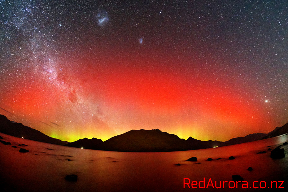ニュージーランド南島クィーンズタウンで、世界時31日13時38分に撮影されたオーロラ。