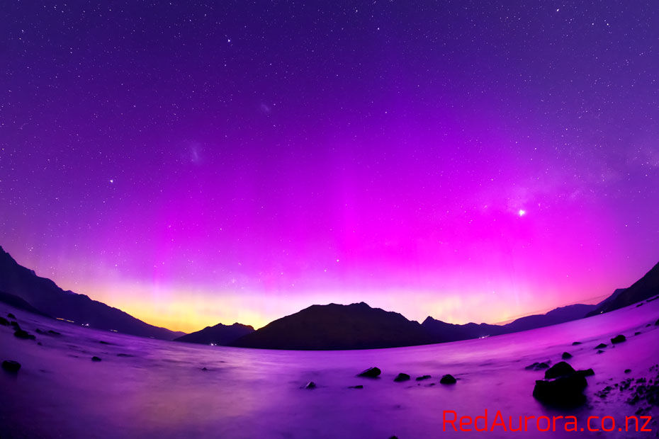 ニュージーランド南島クィーンズタウンで、現地1月12日早朝(世界時11日午後)に撮影されたオーロラ。
