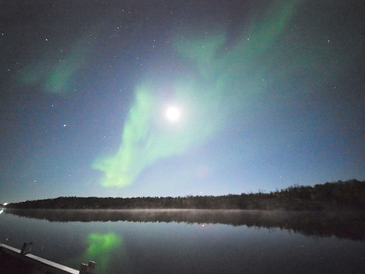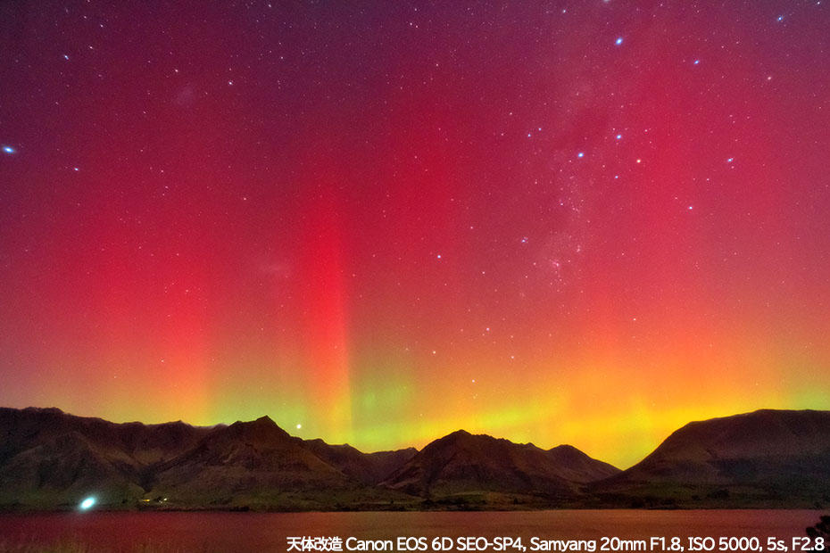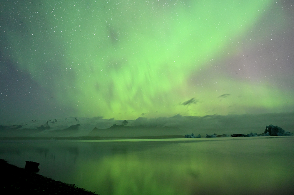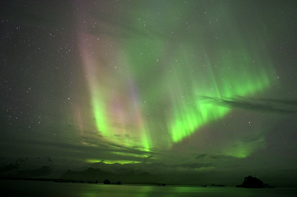 アイスランド北東部のミーヴァトン湖畔で、現地12月24日22時(世界時と同じ)に撮影されたオーロラ。