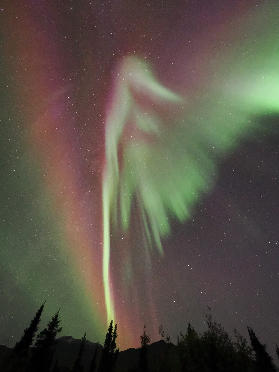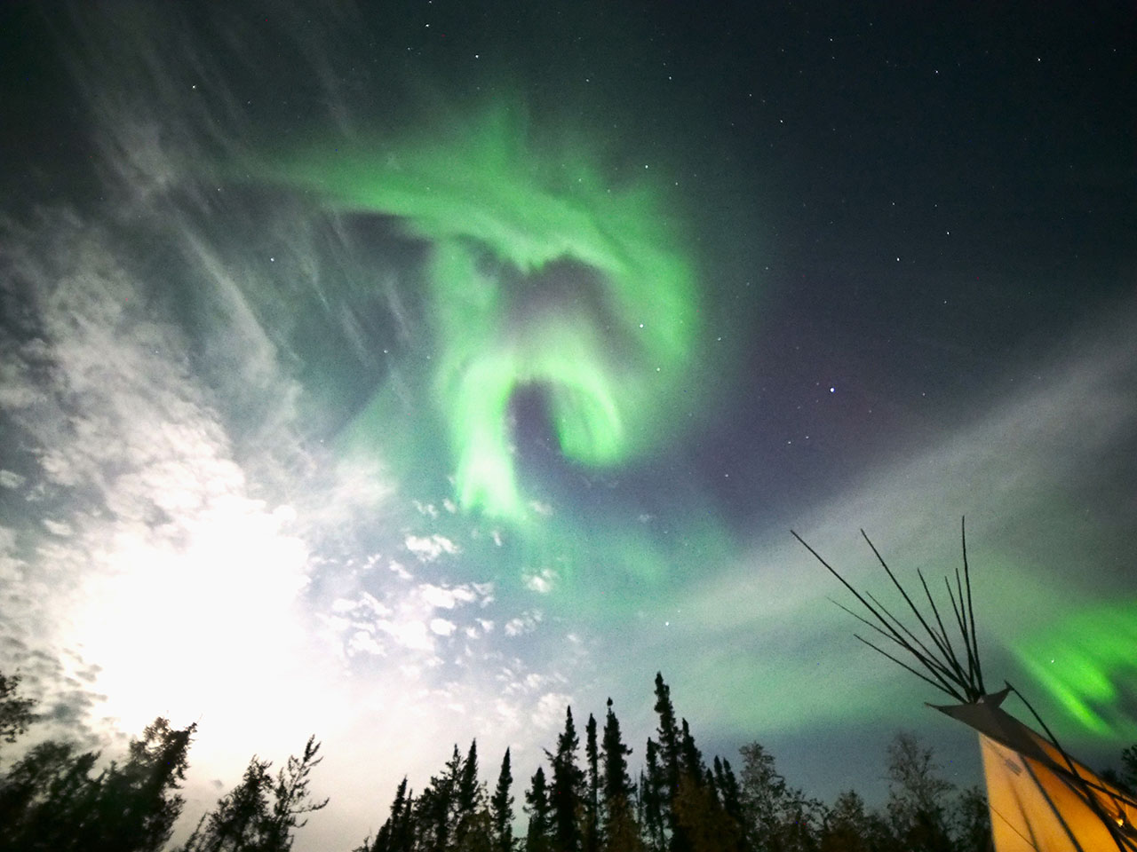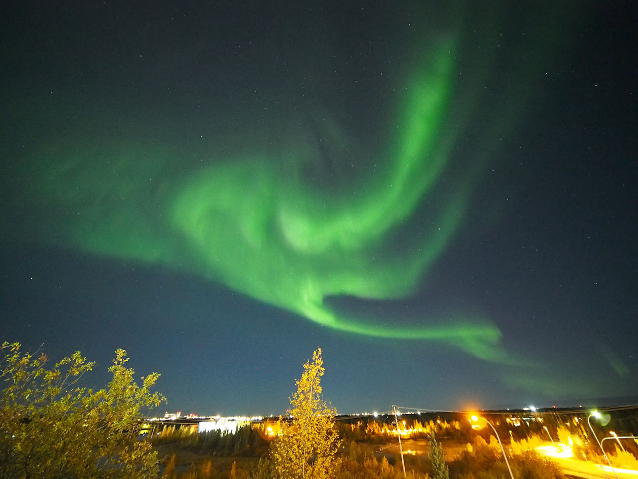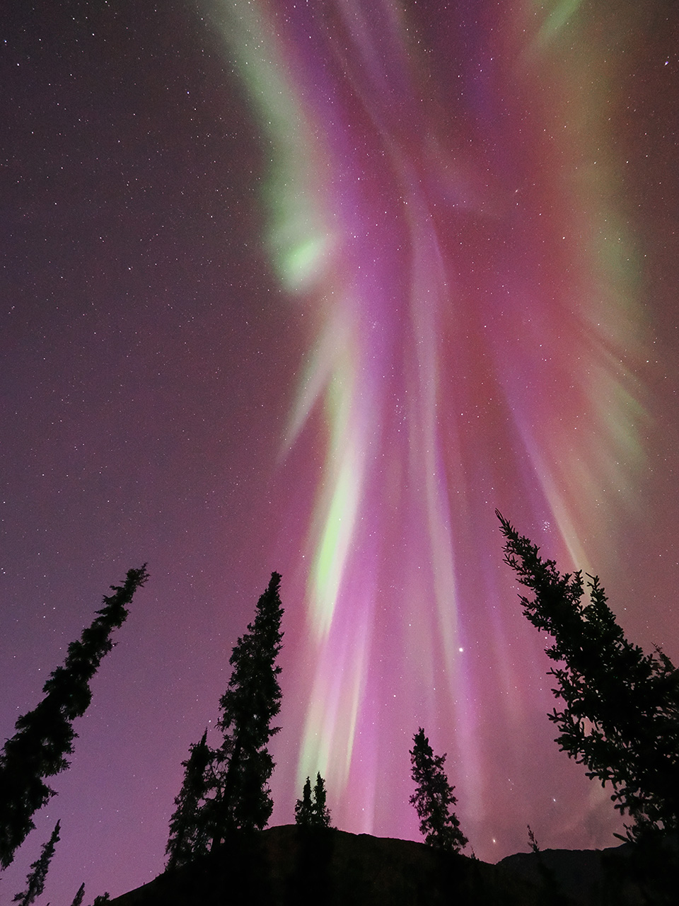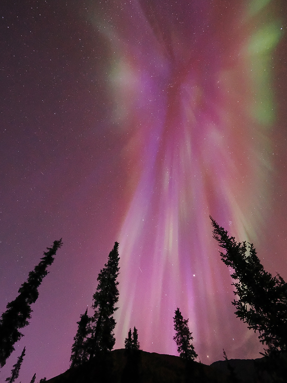 カナダ、ユーコン北部、ツームストーンで、現地4日3〜4時(世界時4日10〜11時)に撮影されたオーロラ。