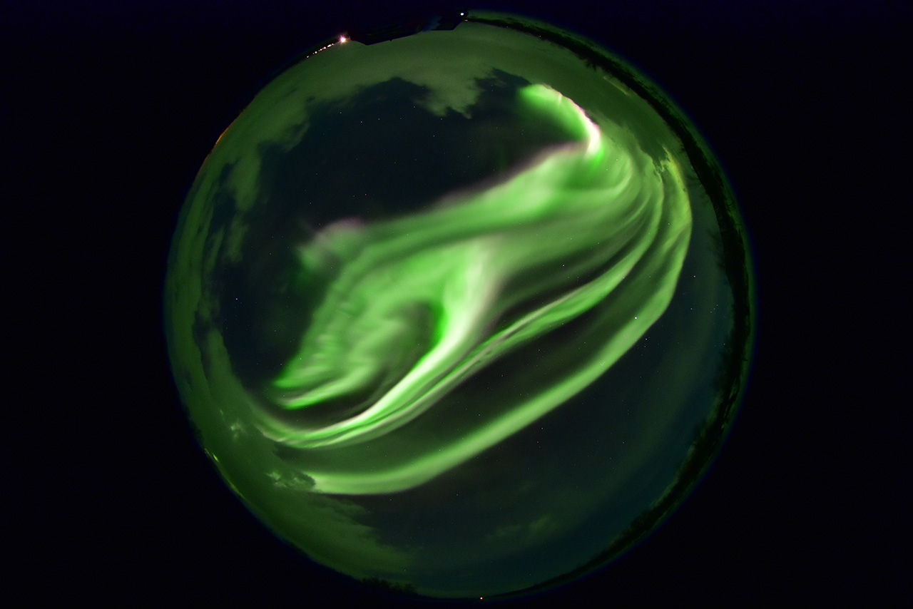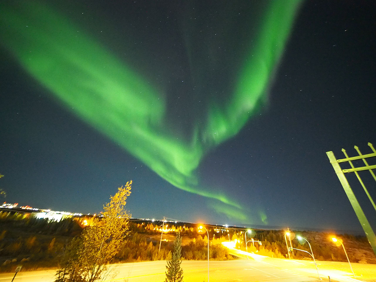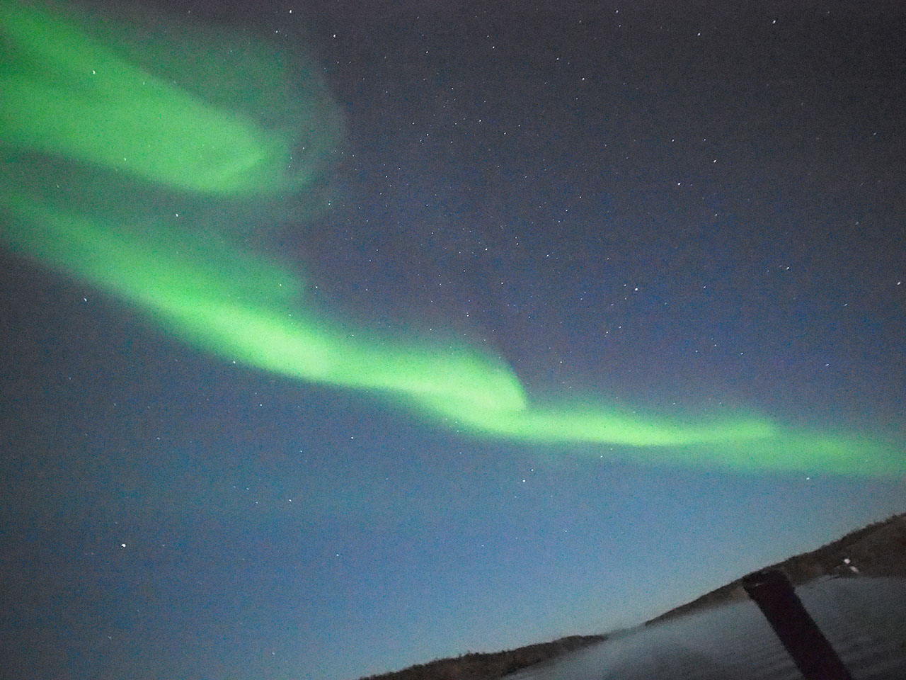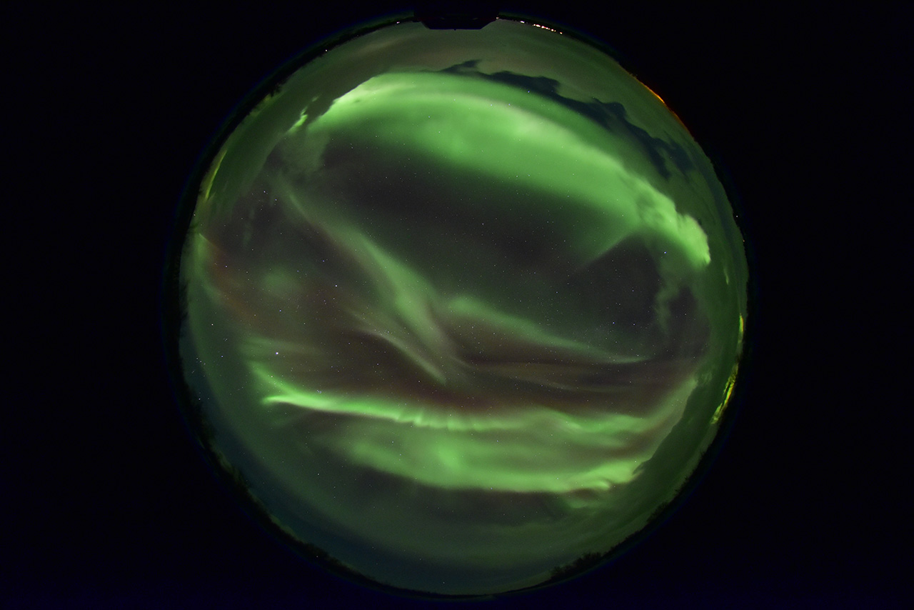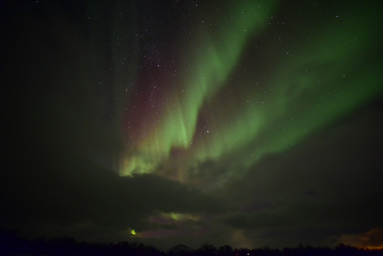 アイスランド北東部のミーヴァトン湖畔で、現地12月23日20時半(世界時と同じ)に撮影されたオーロラ。