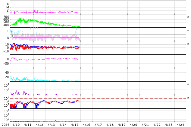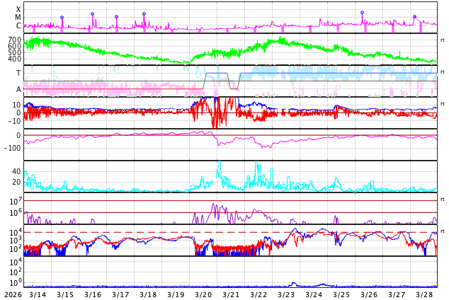 のリアルタイムデータを用い、宇宙天気ニュースで作図しています。
